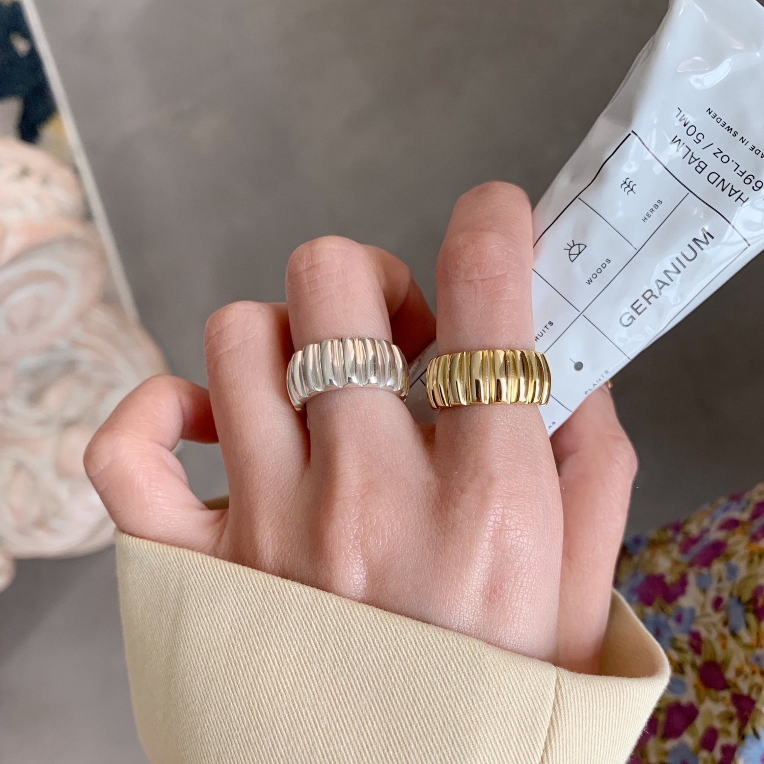 Smooth wheel-like design with silver and gold, two colours that bring out the classics, elegant and versatile.